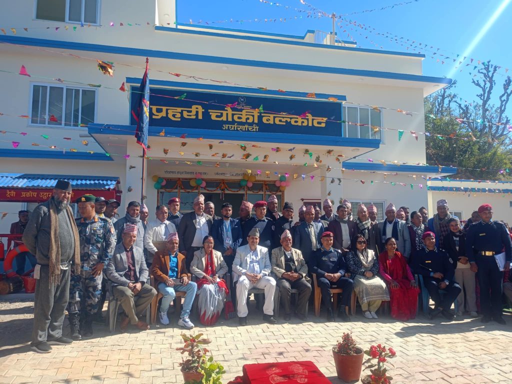 अर्घाखाँची जिल्लाको छत्रदेव गाउँपालिका वार्ड नम्बर २ मा रहेको बल्कोट प्रहरी चाैकि भवनको लुम्बिनी प्रदेश प्रहरी प्रमुख प्रहरी नायब महानिरीक्षक दान बहादुर कार्कीले आज शुक्रबार उदघाट्न गर्नुभएको हो ।