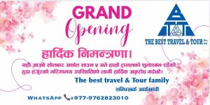 विदेशमा कमाएको पसिनालाई अब आफ्नै माटोमा प्रयोग गर्ने सोचका साथ अघि बढेका समाजसेवी युवा राजु खड्काले अर्घाखाँचीको सन्धिखर्कमै THE BEST TRAVEL & TOUR PVT. LTD. सञ्चालनमा ल्याएका छन्।