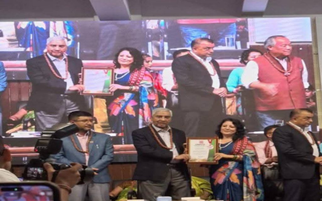 काठमाडौं । नेपाली कांग्रेस नेतृ तथा पूर्व लुम्बिनी प्रदेशसभा सदस्य निर्मला क्षेत्री पार्टीको तर्फबाट सम्मानित भएकी छन्। बीपी स्मृति दिवसको अवसरमा सोमबार काठमाडौंको सानेपास्थित बी.पी. स्मृति भवनमा आयोजित एक विशेष समारोहमा उनलाई नेपाली कांग्रेसका सभापति तथा पूर्वप्रधानमन्त्री शेरबहादुर देउवाले सम्मानपत्र प्रदान गरेका हुन्।