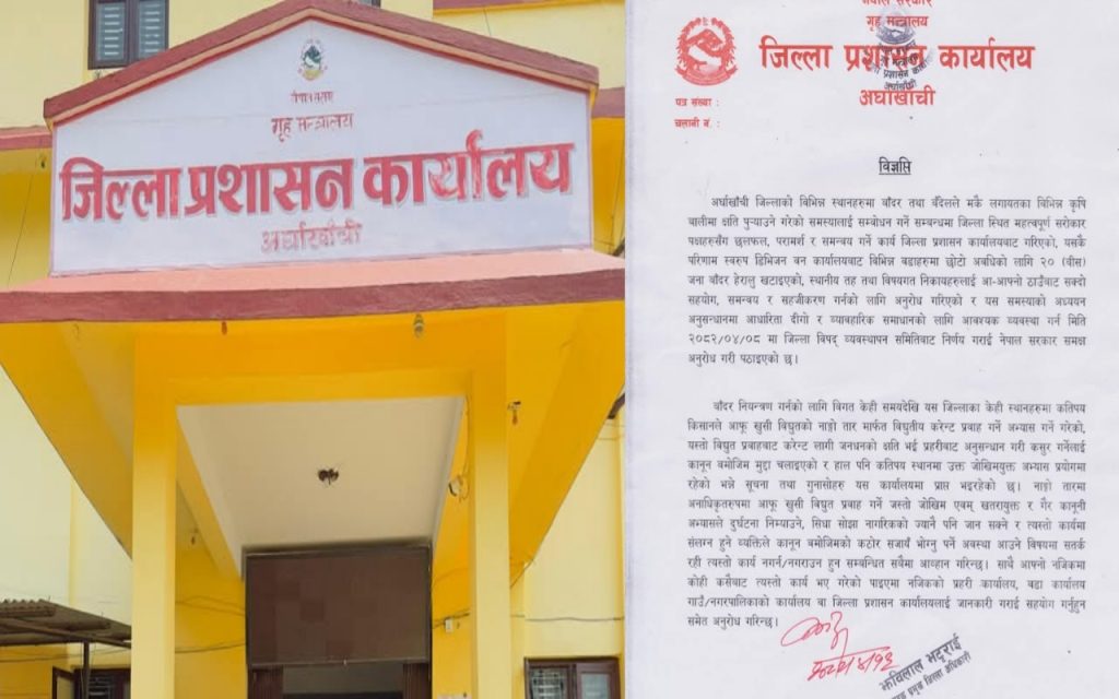 जिल्ला प्रशासन कार्यालय अर्घाखाँचीले एक विज्ञप्ति जारी गर्दै बाँदर नियन्त्रणका लागि भइरहेको प्रयास र यससँग जोडिएका केही चिन्ताजनक र खतरनाक अभ्यासबारे जानकारी गराएको हो ।