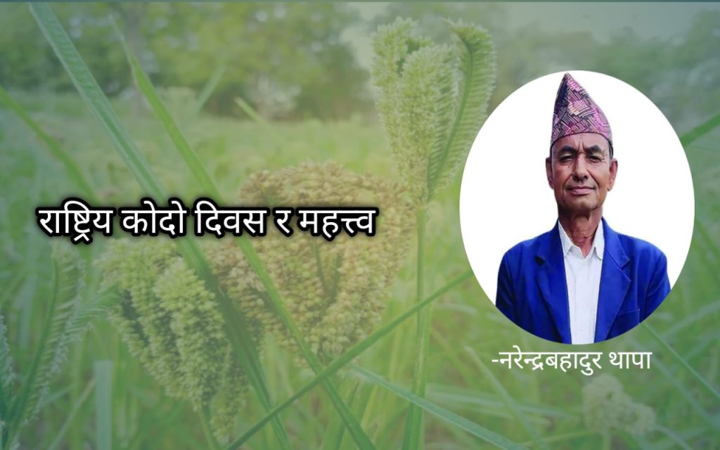 अन्त्यमा यो कोदो वाली उत्पादन बढाउन , उपयोग र उपभोगको लागि अध्ययन र अनुसन्धान गरी नयाँ प्रबिधिको विकास र प्रयोगको आवश्यकता बढेर गएको कुरा सम्बन्धित निकायको ध्यानाकर्षण गराउँदै राष्ट्रिय कोदो दिवसको सबैलाई शुभकामना !