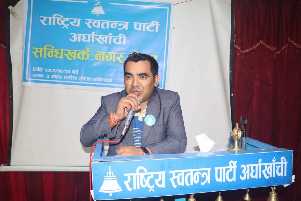 शनिबार राष्ट्रिय स्वतन्त्र पार्टी (रास्वपा) अर्घाखाँचीद्वारा सन्धिखर्कमा आयोजना गरिएको नगर भेला भव्य र शिष्ट वातावरणमा सम्पन्न भयो। कार्यक्रमको सुरुवात बिहान टोल–टोलबाट आएका युवाहरूको उत्साहजनक सहभागितासहितको रंगीन मोटरसाइकल र्यालीले भयो, जसले सम्पूर्ण शहरलाई राजनीतिक उत्साहले भरिदियो। त्यो भिडमा खड्कामा उत्साह नयाँ उर्जा देखिन्थ्यो ।