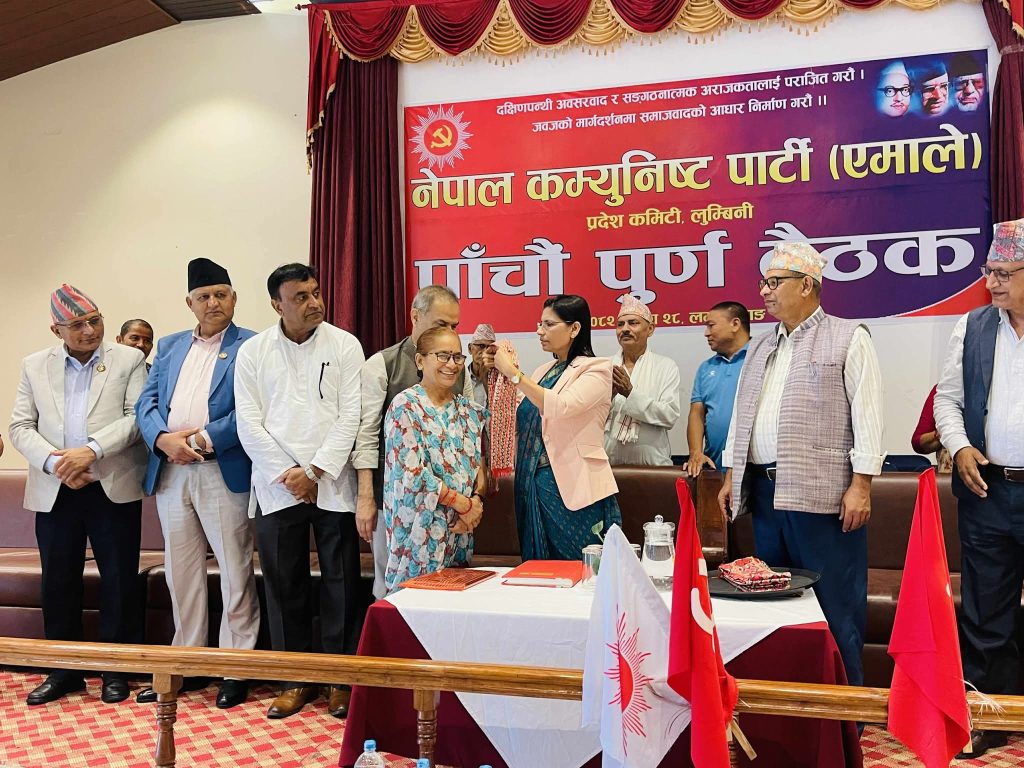 दाङको लमहीमा सुरु भएको एमाले लुम्बिनी प्रदेश कमिटीको पाँचौँ पूर्ण बैठकमा, पार्टीका केन्द्रीय सचिव तथा प्रदेश इन्चार्ज पद्मा अर्यालले उनलाई पार्टीमा स्वागत गरेकी हुन्।