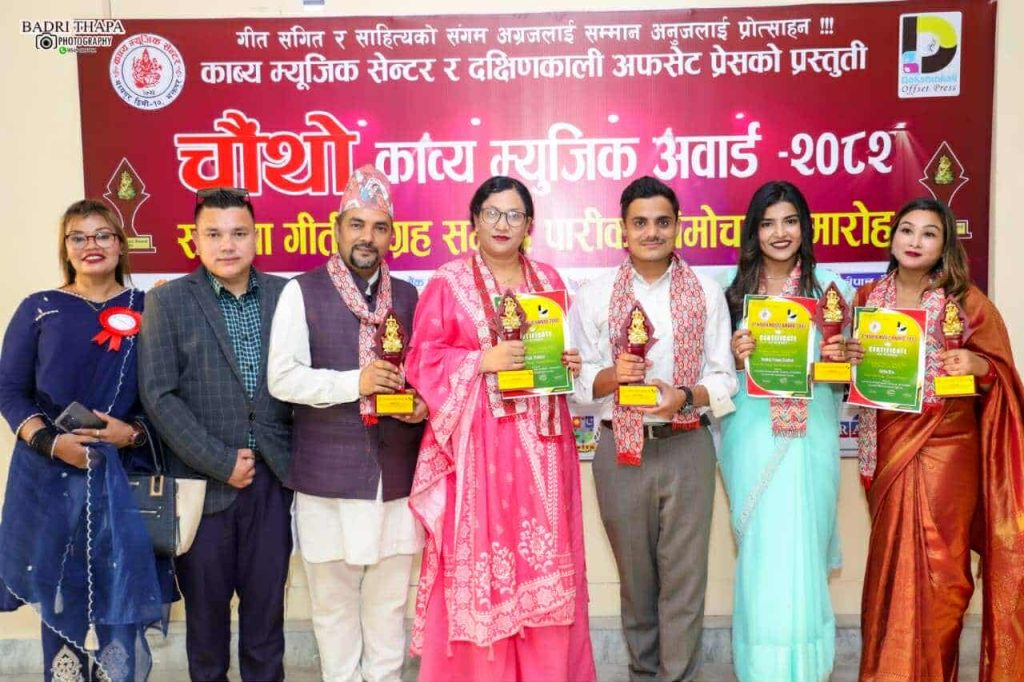 काठमाडौं – गीत, संगीत र साहित्यलाई एकसाथ जोड्ने उद्देश्यसहित राजधानीमा “चौथो काव्य म्युजिक अवार्ड – २०८२” सम्पन्न भयो। काव्य म्युजिक सेन्टर र दक्षिणकाली अफसेट प्रेसको आयोजनामा नेपाल चलचित्र विकास बोर्डको हलमा भएको कार्यक्रममा लोकप्रिय गायक तथा सर्जक मोतिराज खनालले आफ्नो तिजगीत “छड्के कपाल किन कोरेको” मार्फत सर्वोत्कृष्ट चाडपर्व तिजगीत अवार्ड हात पारे।