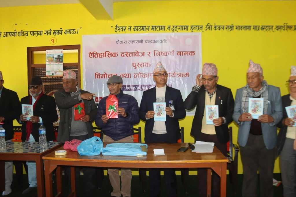 चौतारा महारानी चन्द्रप्रभावतिको ऐतिहासिक दस्तावेज र निष्कर्ष नामक पुस्तकको एक कार्यक्रमका बीच आज सन्धिखर्कमा लोकार्पण गरिएको छ ।