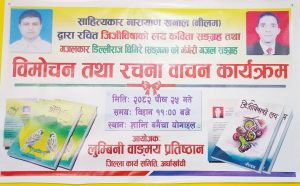 छुट्टै अतिथि नछुट्याई उपस्थित सबै महानुभावको सम्मान गर्दै सामूहिक रूपमा कृतिको विमोचन गरिएको उक्त कार्यक्रम सौहार्दपूर्ण र उत्साहपूर्ण उपस्थिति बीच सम्पन्न भएको आयोजकले जनाएको छ।