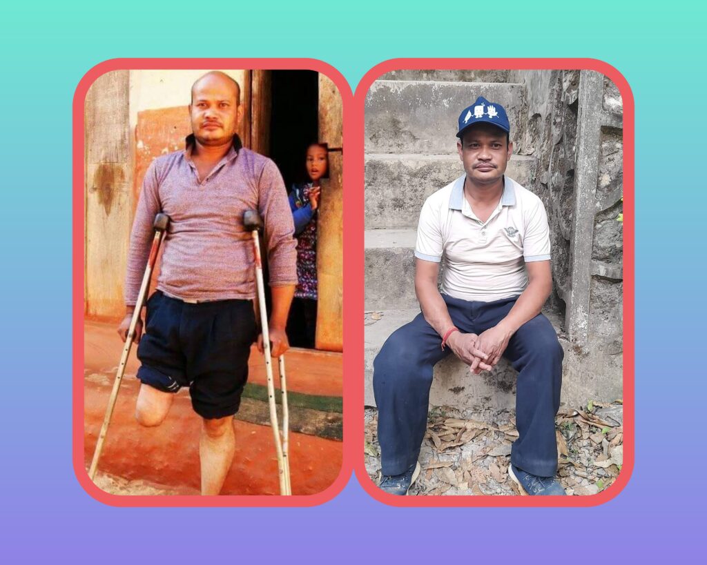 पछि मात्र थाहा भयो । लेनमाइन रहेछ । त्यही बमले मेरो दाहीने खुट्टा लगीदियो । म बेहोसखेतमा भैसकेको थिए । जिल्ला अस्पताल लगिएछ । सामान्य उपचार गराइएछ । पछि हेलिकोप्टरको साहायता बाट पोखरा गन्डगी अस्पताल एक रात राखिएछ । अर्को दिन सोही हेलिकोप्टर द्धारा त्यहाँ बाट काठमाण्डौ छाउनी अस्पताल लगियो । त्यहा मेरो अप्रेशन गरेर घुडा भन्दा माथिको भाग पुरै फालिएछ । कम्मर देखि तल हातमा छातीमा पुरै ठाउँमा पट्टी बाधीएको थियो । जब म होसमा आए । मेरो दुःखको जिवन सुरु भयो ।भर्खर बिस एक्काइस वर्षको थिए । अर्ध शरिर थियो । शरिरमा धेरै दिन सम्म दुखाइ भयो।धेरै रोए । एकातिर अर्ध शरिर,अर्कोतिर घाउको पिडा साथै आफुले सिकेर गर्न सक्ने काम गर्न नसकिने भयो । भन्दै अनेक कुरा मनमा खेलाउदै धेरै रोए । धेरै विलौना गरे । करिव एक वर्ष छाउनी अस्पताल उपचारको क्रममा बसे । अस्पता बाट डिस्चार्ज भए । सेनालेनै पोखरा विजयपुर ब्यारेक,फुलबारी ब्यारेक हुदै घरमा ल्यादिए । त्यस पछि फेरी मेरो जिबनको सँसारै बदलिएछ ।पहिलाको म र अहिलेमा आकाश धर्ती जस्तै फरक पाए । घर पविारले गर्ने व्यबहार साथि भाइले गर्ने व्यबहार धेरै भिन्नता पाए । पहिला म बिना कसैको घरमा काम अधुरो रहन्थेयो भने अहिले मेरो नाम निशाना छैन । हुदो रहेछ । कसैको घरमा काम पर्यो भने मलाइ नै बोलाउने गर्थे । भने अहिले म देखि टाढिन थाले । सवै जना । त्यसैले मेरो जिवन झन दुःखमा बित्यो । जब म घरमा आए । म धेरै पटक जिल्ला प्रशासन धाए । जति पटक सिडियो फेरिन्थे तेति पटक आफ्नो कुरा राख्न जान्थे । मैले भन्ने गर्थे सवैला म यो कारणले अपाङ्ग असक्त भए ।
