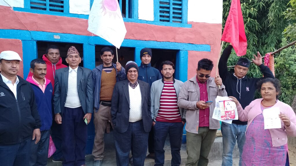 मङ्सिर ४ गते हुने प्रतिनिधिसभा र प्रदेशसभा निर्वाचन नजिकिँदै गर्दा उम्मेदवारहरूको पक्षमा भोट माग्न भेटघाट तथा घरदैलो अभियान संचालन गरेका हुन ।