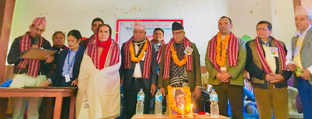 - कार्यक्रममा आत्मसिंह घर्तीको अध्यक्षतामा नया कार्य समिती समेत चयन गरिएको छ । जसको उपाध्यक्षमा हरिप्रसाद पन्थि, राजेन्द्र श्रेष्ठ, सचीवमा डिलाराम बञ्जाडे र अर्जुन पाेखरेल, कोषाध्यक्षमा बिष्णु प्रसाद भट्टराई, सदस्यहरुमा शारदा भुसाल, सम्झाना पन्थी, राजेश श्रेष्ठ, चेतनाराण श्रेष्ठ, प्रकाश जिसि, जनक पुन रहेका छन् । लेखा समितिमा शिवनाथ श्रेष्ठ, पदम पाण्डे, गणेशराज पौडेल रहेका छन भने सल्लाहकारमा गोपाल सिंह आचार्य, भेष बहादुर बिसि, गोपाल भुसाल, लक्ष्मण भण्डारी, हेमन्त बेल्बासे रहेका छन । सल्लाहकार सदस्यमा गाेपालसिंह अर्याल र प्रकाश पिसी रहेका छन् ।