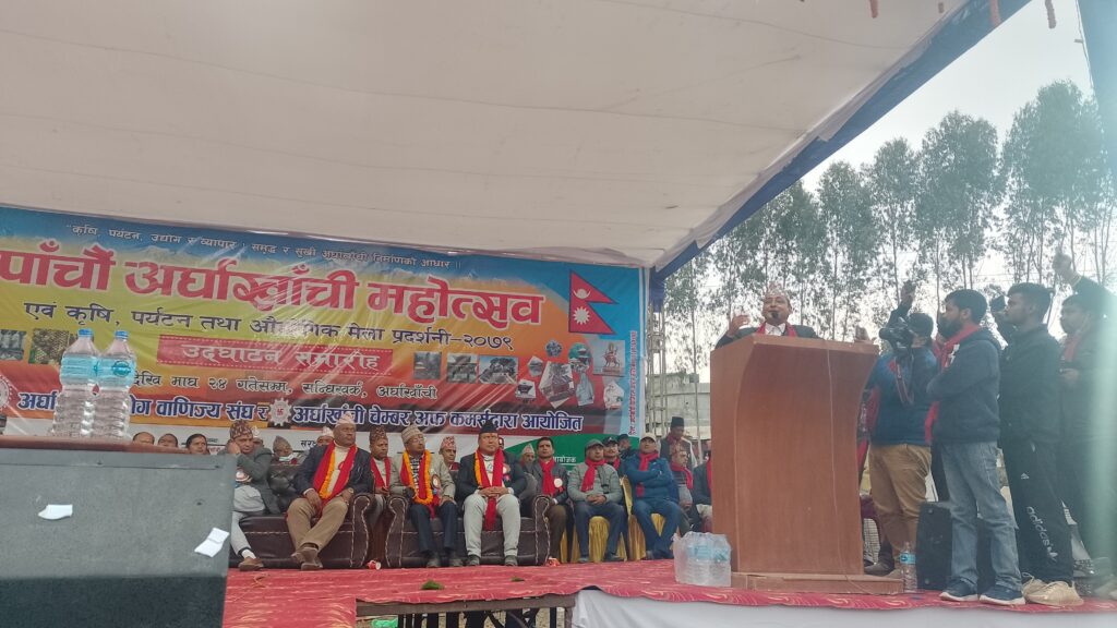 युवाहरूको लागि रोजगार राष्ट्रीय समस्या रहेको बताउदै समाधान तिर आफू लागि परेको बताए । माघ ११ गते देखी २४ गते सम्म लाग्ने अर्घाखाँची महोत्सव विभिन्न नित्य सांस्कृतिक भैलो प्रदर्शन जातजातीका भेषभुषा र बाजागाजा सहित मेलाको उद्घाटन गरिएको थियो ।