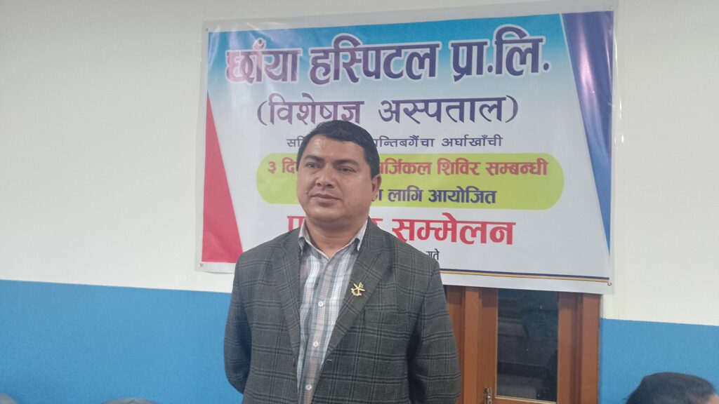 सन्धिखर्कमा हस्पिटलको हलमा बिहिवार पत्रकार सम्मेलन गरि चैत ११,१२र १३ गते तीन दिन नि:शुल्क सर्जिकल शिविर गर्ने जानकारी दिएको हो । २०४० सालमा स्थापन भएको छाँया पोलिक्लिनिक नयाँ सेवा सुविधा सहित छाँया हस्पिटल प्रा.लि. परिणत भएपछि थप सुविधा थपिएको हस्पिटलका संचालक दल ब. केसीले जानकारी दिए । जिल्लामा कोहि पनि दाम नभएर सेवा सुविधा बाट बन्जित नहुनुपर्ने बताए । जिल्लाको लागी सेवा विस्तार गर्नु खुशीको कुरा हो, तर यसलाई टिकाई राख्न पनि सबैको साथ आवश्यक छ। उनले भने।