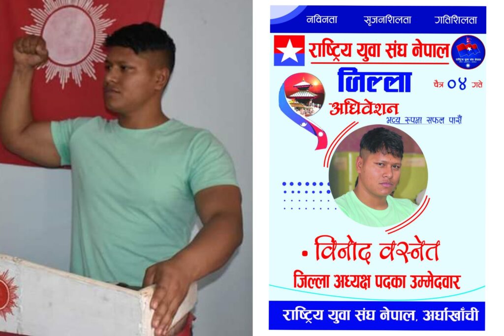 राष्ट्रिय युवा संघ नेपाल, अर्घाखाँचीको अध्यक्ष पदमा बिनोद बस्नेतले उम्मेद्बारी दिने भएका छन ।